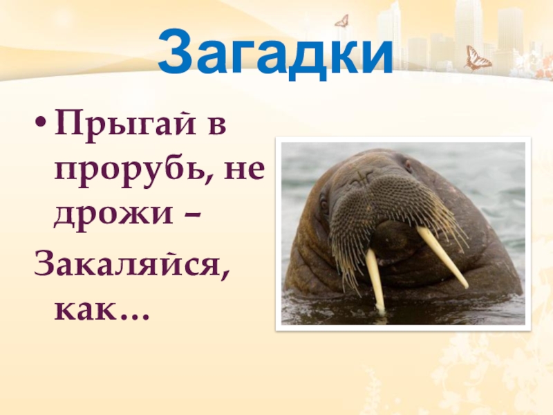 ЗагадкиПрыгай в прорубь, не дрожи –Закаляйся, как…