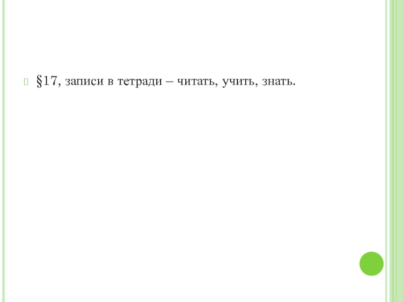 Слайд 18§17, записи в тетради – читать, учить, знать.