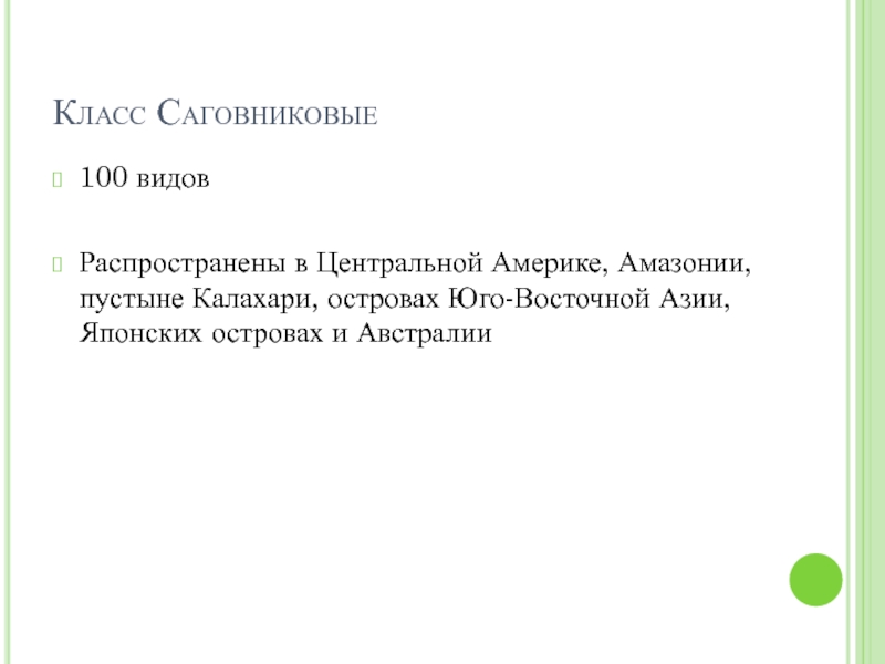 Класс Саговниковые100 видовРаспространены в Центральной Америке, Амазонии, пустыне Калахари, островах Юго-Восточной Азии, Японских островах и Австралии