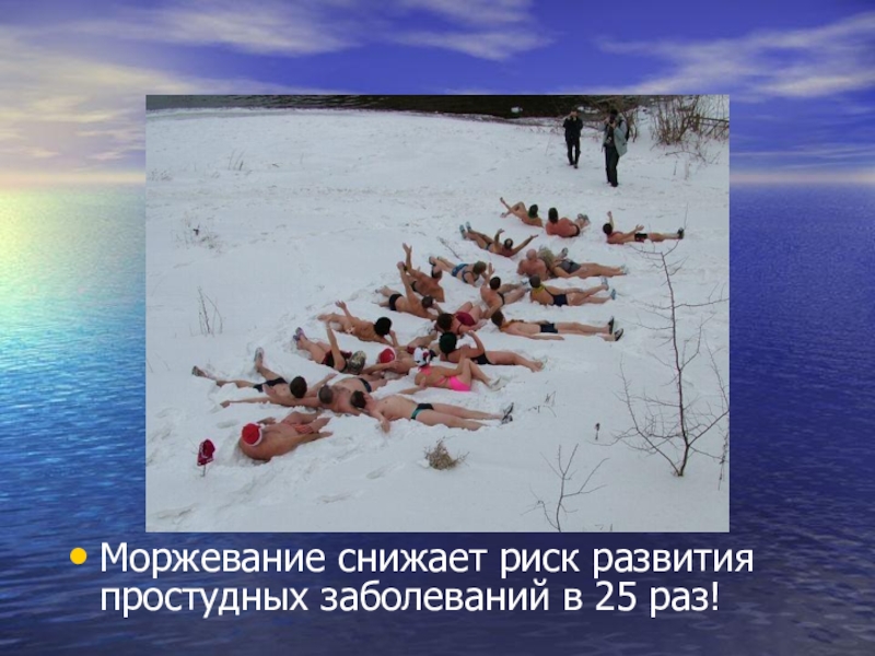 Слайд 5Моржевание снижает риск развития простудных заболеваний в 25 раз!