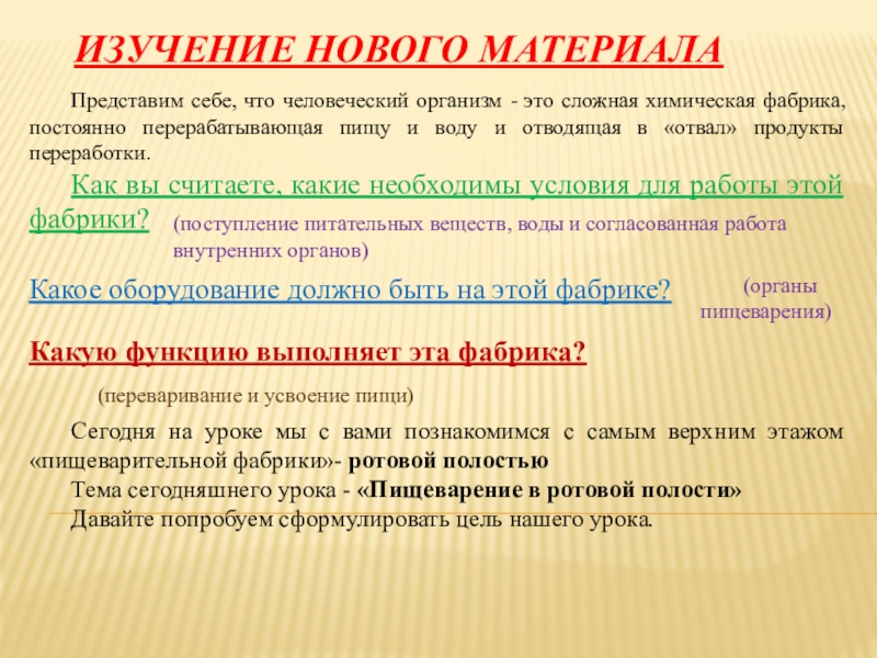 Сегодня на уроке мы с вами познакомимся с самым верхним этажом «пищеварительной фабрики»- ротовой полостью