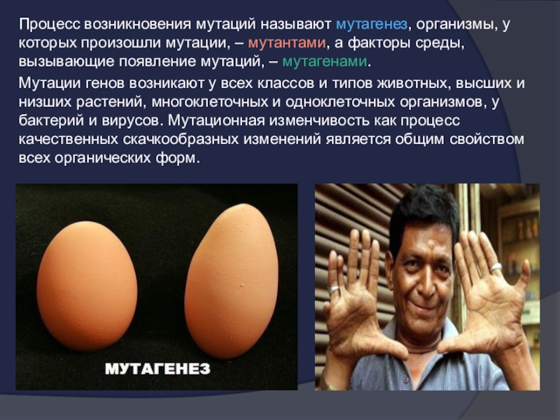 Слайд 3Процесс возникновения мутаций называют мутагенез, организмы, у которых произошли мутации, –