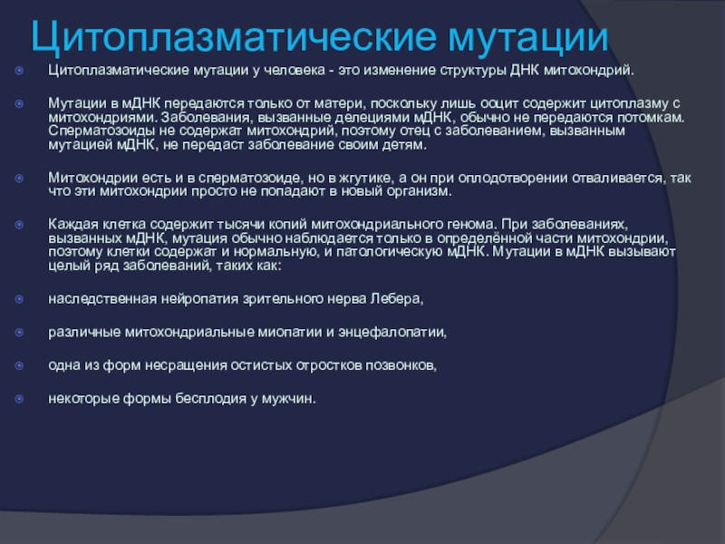 Слайд 9Цитоплазматические мутации