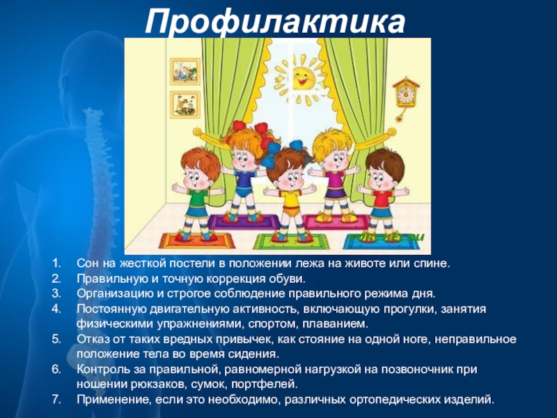 Отказ от таких вредных привычек, как стояние на одной ноге, неправильное положение тела во время сидения.