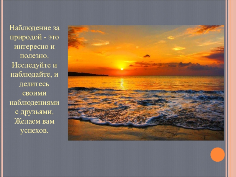 Слайд 6Наблюдение за природой - это интересно и полезно. Исследуйте и наблюдайте,