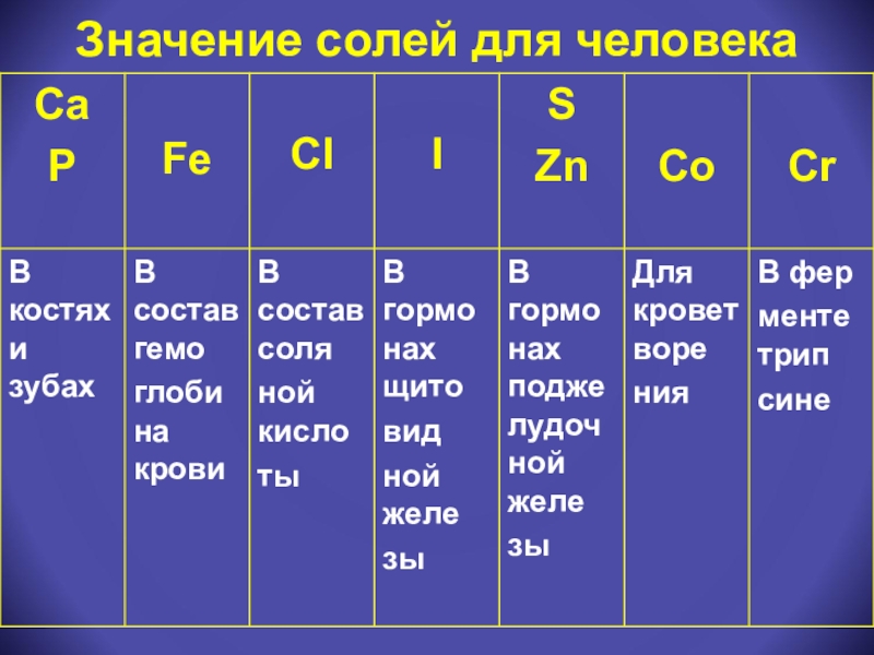 тех или иных минеральных солях в организме человека неодинакова?