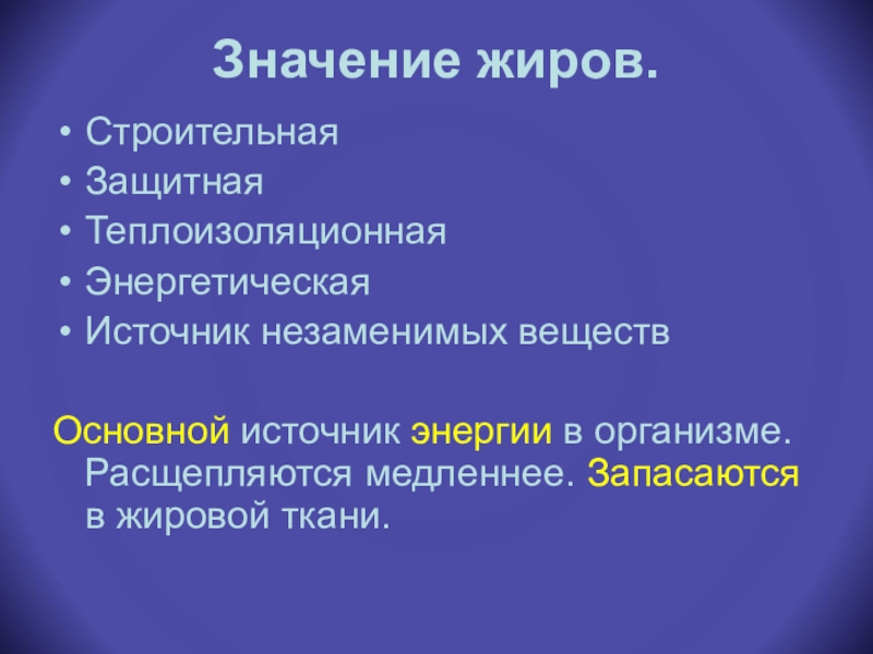 Слайд 11Значение жиров.