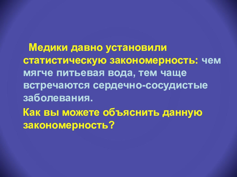 Медики давно установили статистическую закономерность: чем мягче питьевая