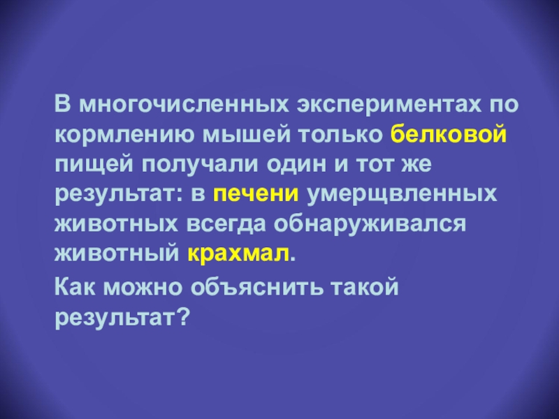 В многочисленных экспериментах по кормлению мышей только белковой пищей