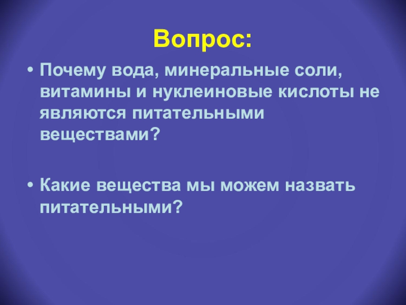Почему вода, минеральные соли, витамины и нуклеиновые кислоты не являются питательными