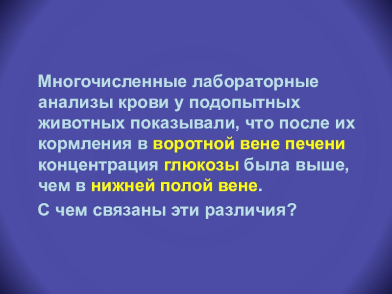 после их кормления в воротной вене печени концентрация глюкозы была выше, чем в нижней полой вене.