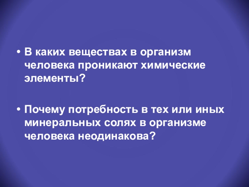Слайд 17В каких веществах в организм человека проникают химические элементы?