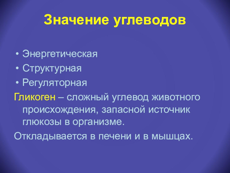Слайд 7Значение углеводов