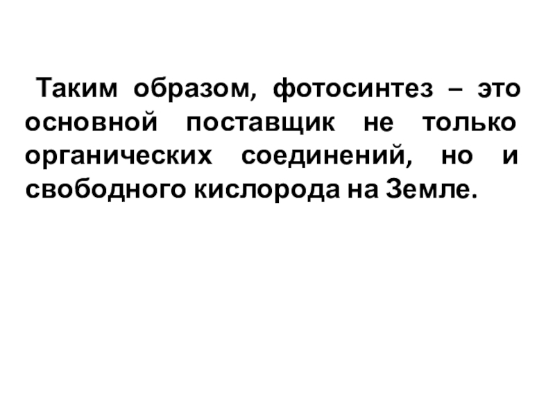 Слайд 9 Таким образом, фотосинтез – это основной поставщик не только органических