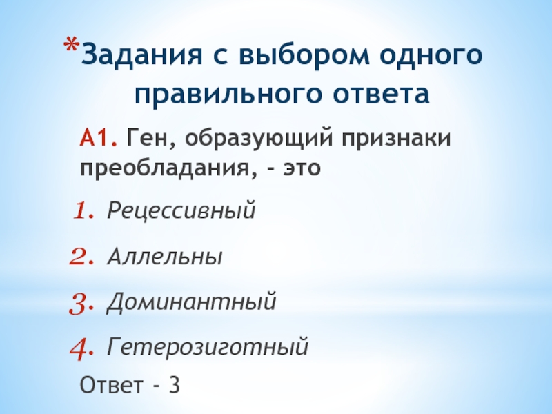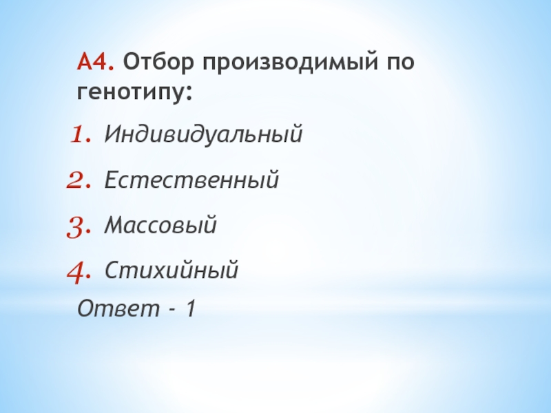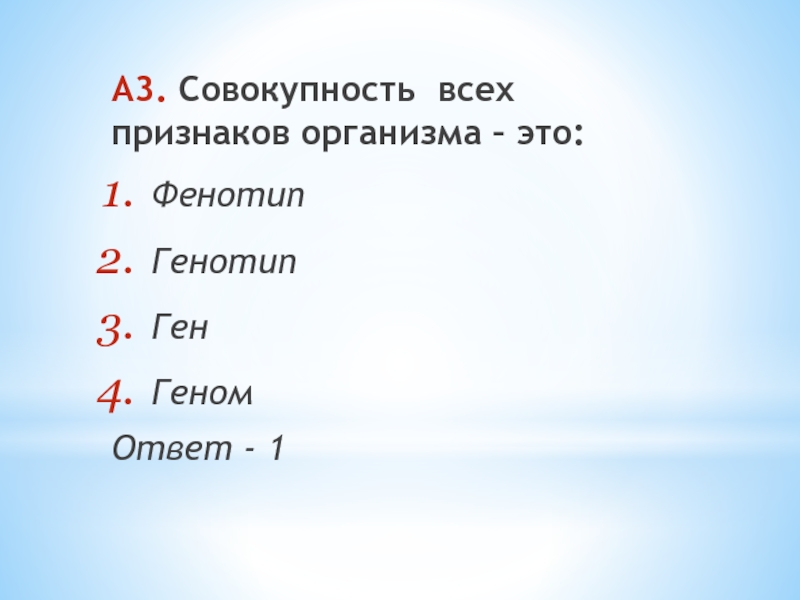 Слайд 5А3. Совокупность всех признаков организма – это: