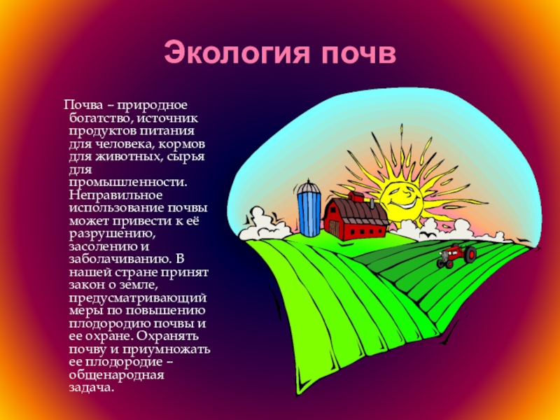 Почва – природное богатство, источник продуктов питания для человека, кормов