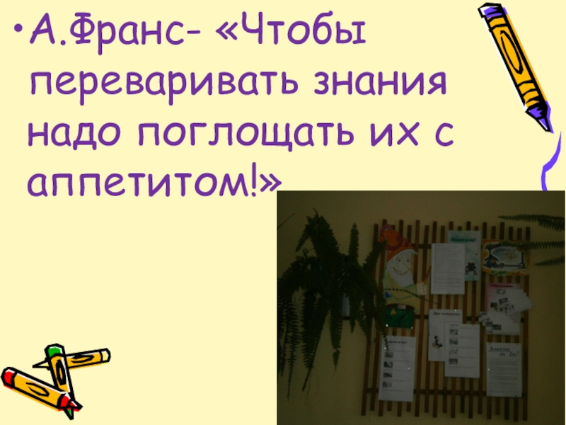 Слайд 19А.Франс- «Чтобы переваривать знания надо поглощать их с аппетитом!»