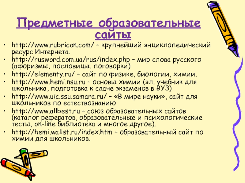 http://hemi.wallst.ru/index.htm – образовательный сайт по химии для школьников.