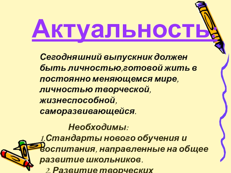 Сегодняшний выпускник должен быть личностью,готовой жить в постоянно меняющемся мире,