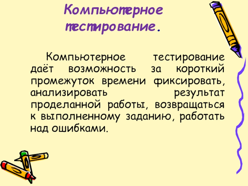 Компьютерное тестирование даёт возможность за короткий промежуток времени фиксировать, анализировать