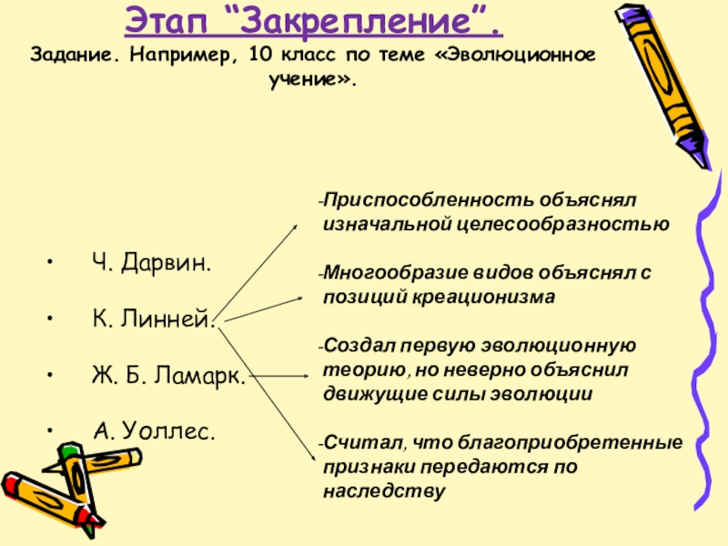 Задание. Например, 10 класс по теме «Эволюционное учение».