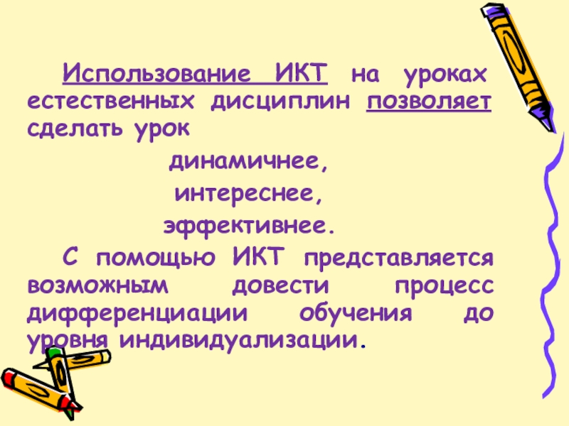 Слайд 35 Использование ИКТ на уроках естественных дисциплин позволяет сделать урок