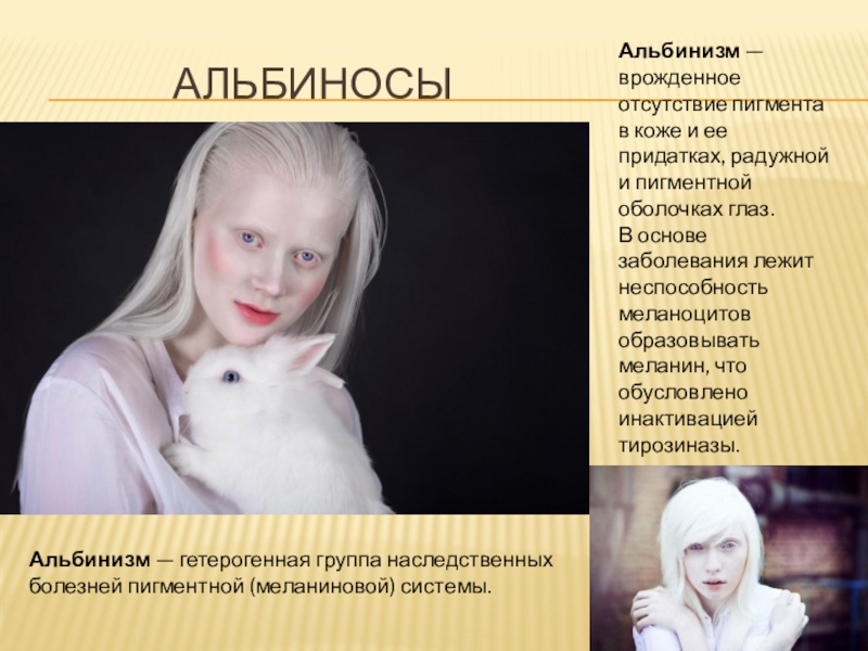 Альбинизм — гетерогенная группа наследственных болезней пигментной (меланиновой) системы.