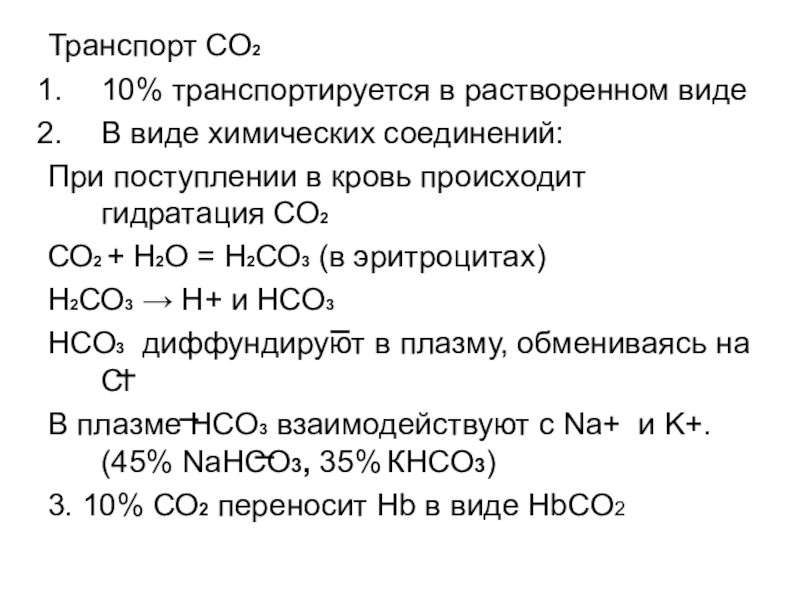 3. 10% СО2 переносит Hb в виде HbCO2