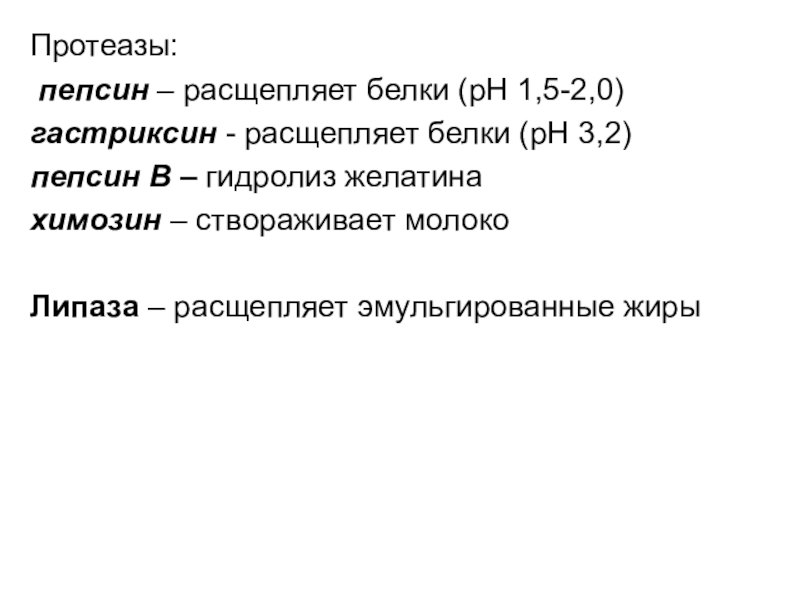 гастриксин - расщепляет белки (рН