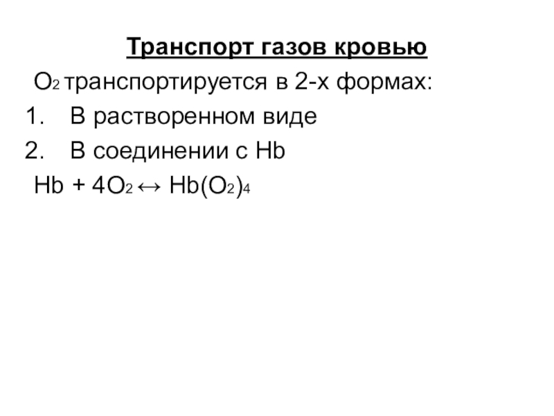 О2 транспортируется в 2-х формах: