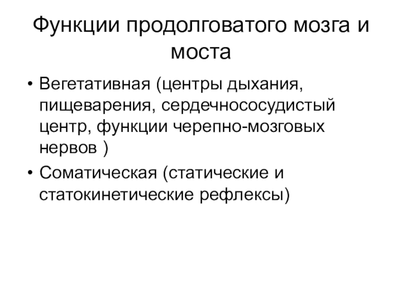 Слайд 18Функции продолговатого мозга и моста