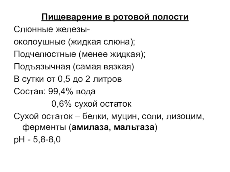 Слайд 97Пищеварение в ротовой полости