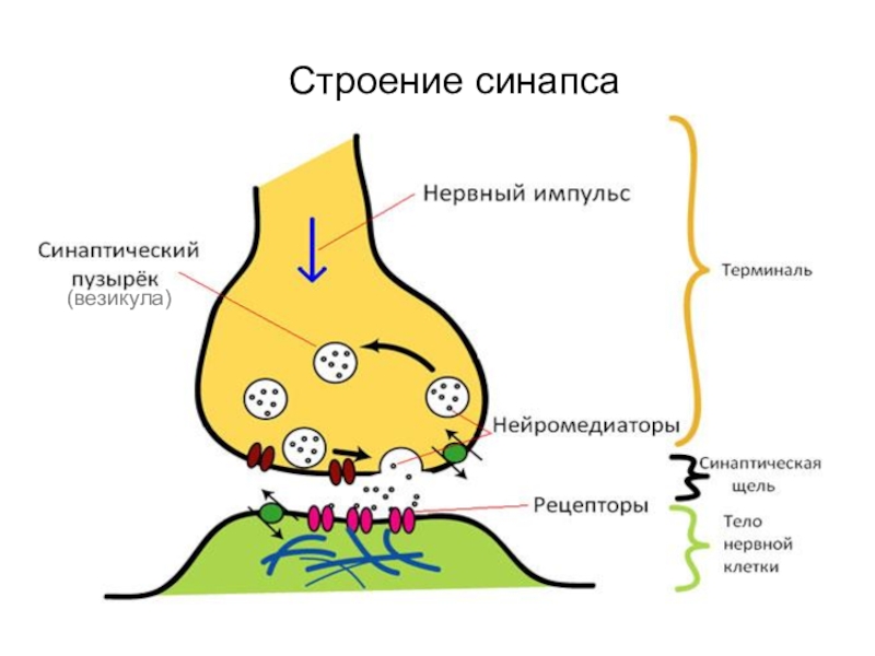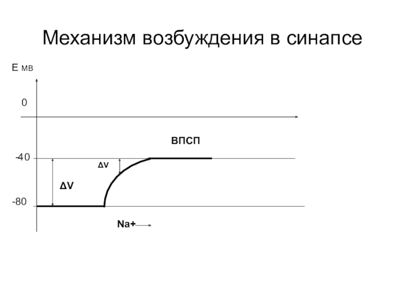 Слайд 7Механизм возбуждения в синапсе