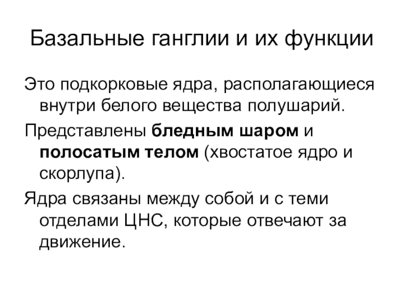 Являются важной структурой, входящую в единую систему, регулирующую тонус скелетных мышц и движение.