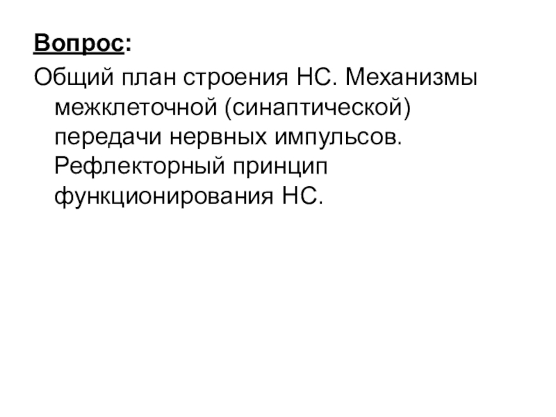Общий план строения НС. Механизмы межклеточной (синаптической) передачи нервных импульсов. Рефлекторный
