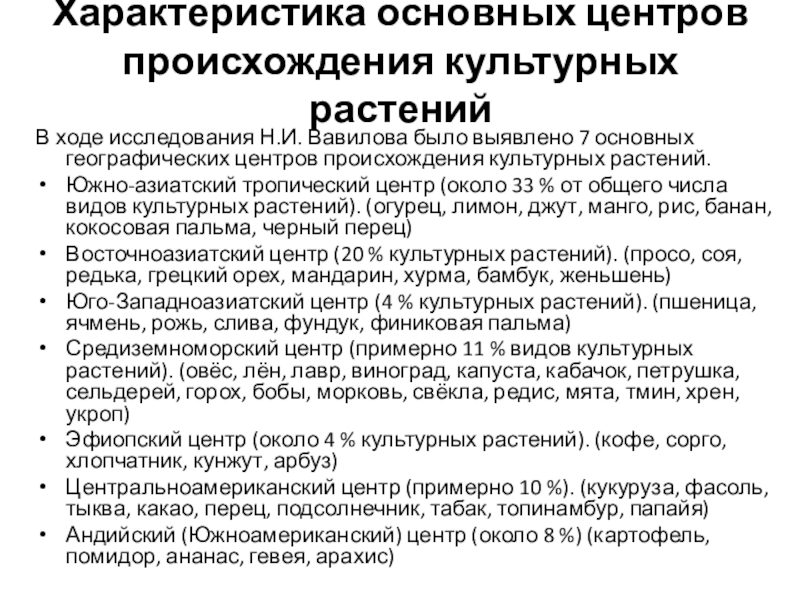 Слайд 31Характеристика основных центров происхождения культурных растений