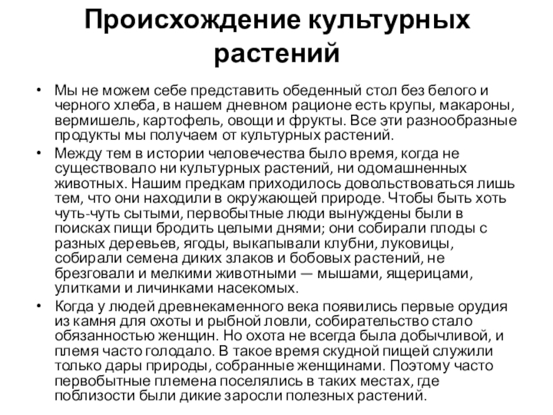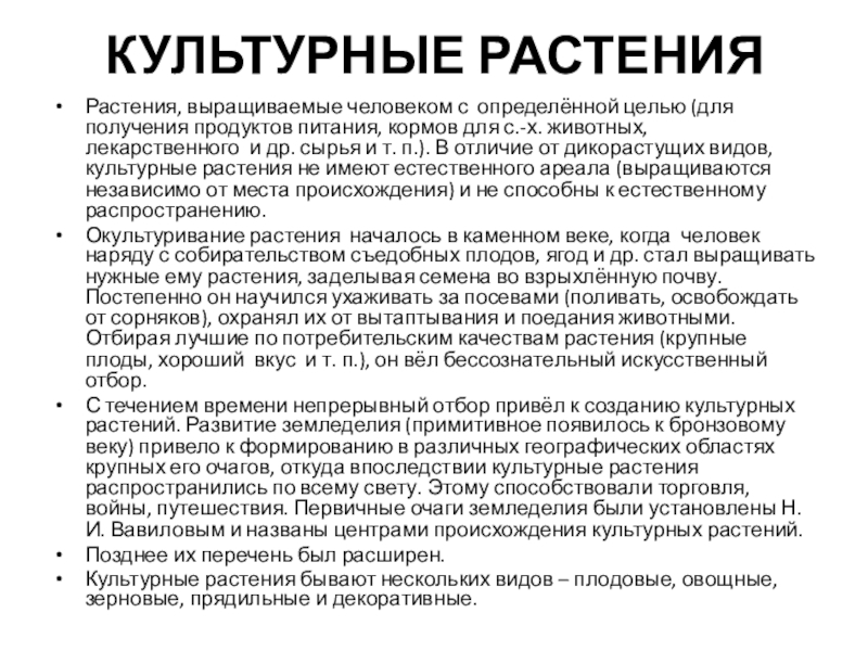 растений, или 10 % общего их количества. Почти все они возделываются с глубокой древности (несколько тысячелетий), и лишь немногие – в течение нескольких веков.