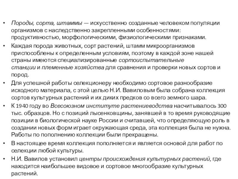 Слайд 23Породы, сорта, штаммы — искусственно созданные человеком популяции организмов с наследственно закрепленными