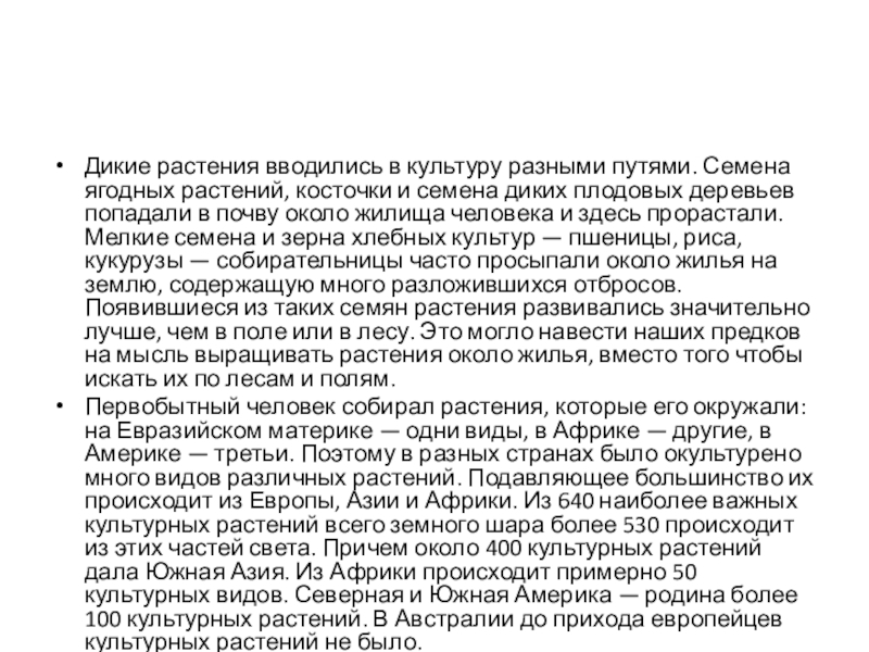 Слайд 8Дикие растения вводились в культуру разными путями. Семена ягодных растений, косточки