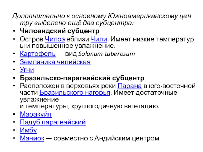 Слайд 41Дополнительно к основному Южноамериканскому центру выделено ещё два субцентра: