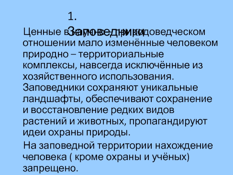 1. Заповедники