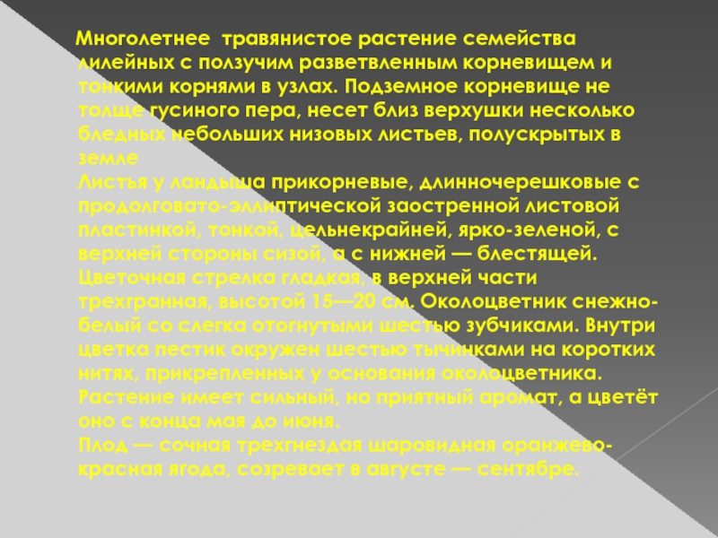 Многолетнее травянистое растение семейства лилейных с ползучим разветвленным