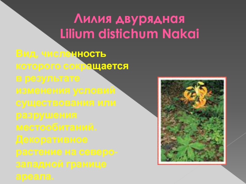 существования или разрушения местообитаний. Декоративное растение на северо-западной границе ареала.