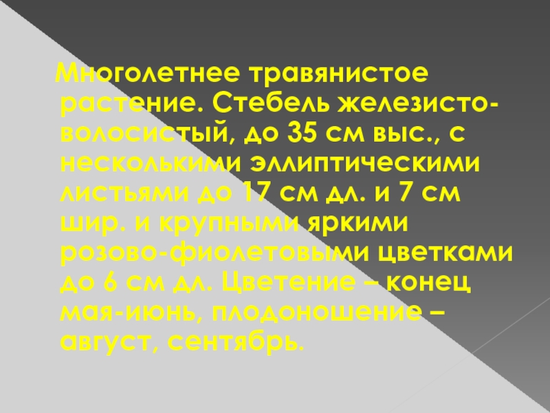 Многолетнее травянистое растение. Стебель до 35 см выс., железисто-волосистый,