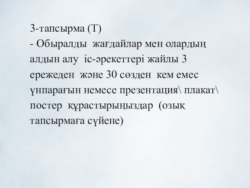 - Обыралды жағдайлар мен олардың алдын алу іс-әрекеттері жайлы үнпарағын құрастырады