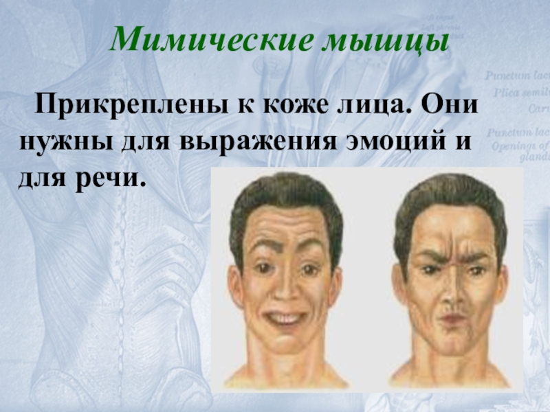 Слайд 35 Прикреплены к коже лица. Они нужны для выражения эмоций и