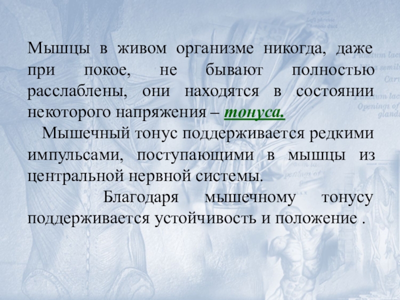 расслаблены, они находятся в состоянии некоторого напряжения – тонуса.