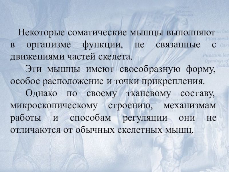 Слайд 34 Некоторые соматические мышцы выполняют в организме функции, не связанные