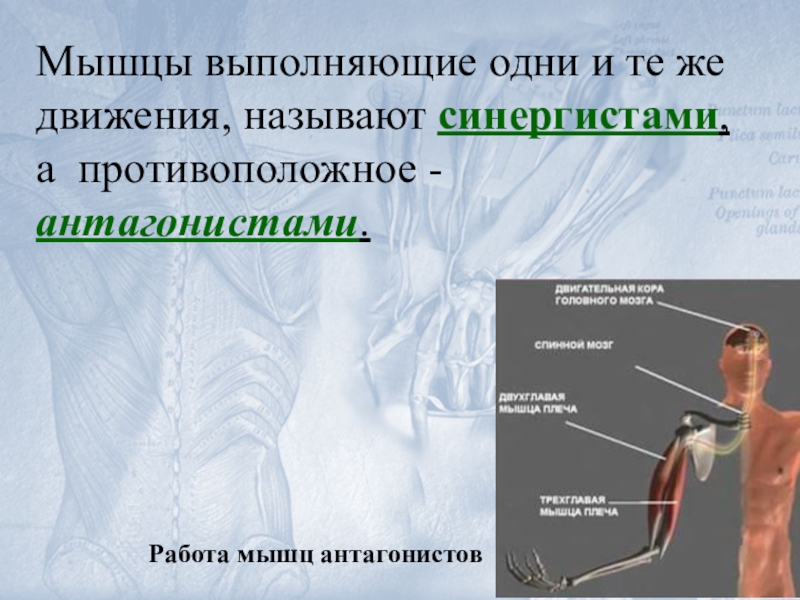 Мышцы выполняющие одни и те же движения, называют синергистами,