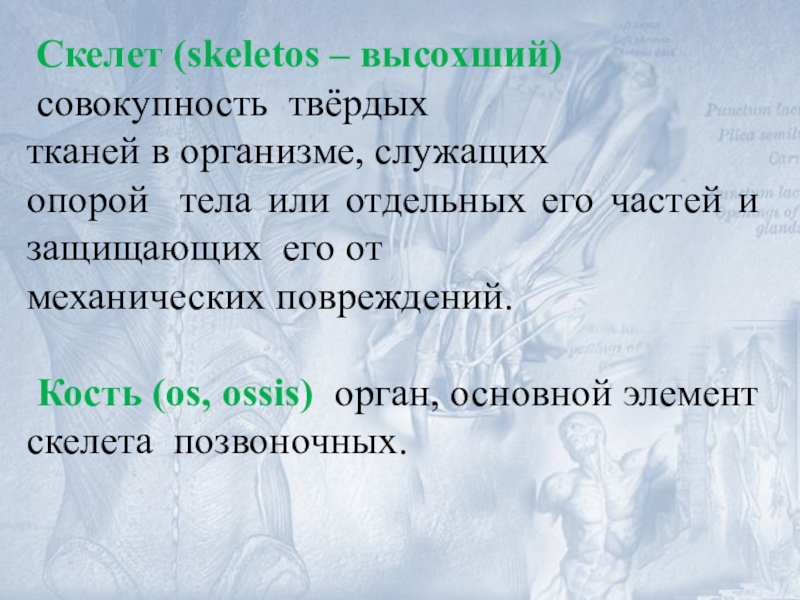 Кость (os, ossis) орган, основной элемент скелета позвоночных.